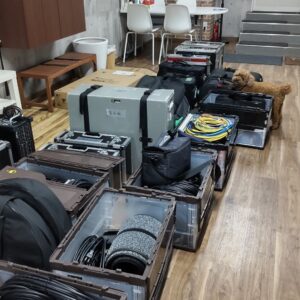 ぼくはどこにいるでしょう?これ全部撮影で使う機材なんだって!ぼくも機材として一緒に撮影に行ってみようかなー… and more